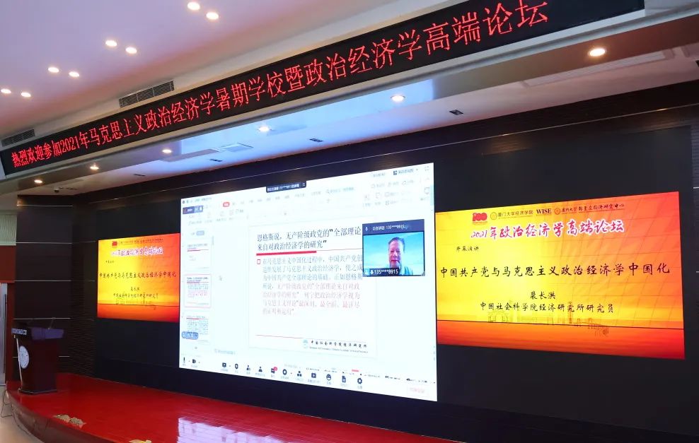 7月28日,由厦大经济学科主办的2021年马克思主义政治经济学高端论坛在厦大经济楼举行,本次论坛是2021年马克思主义政治经济学暑期学校的重要组成部分,主题为“21世纪的马克思主义政治经济学”,共邀请15位专家学者演讲。