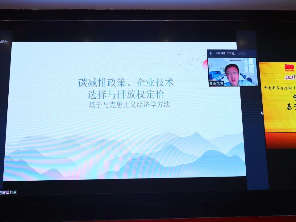 •厦门大学王艺明教授致力于用马克思主义经济学方法解决现实问题。近期全国碳排放权交易市场开市,碳减排政策是一个热点话题,他应用生产部门按比例承担污染处理成本的理论模型分析这种减排政策设计,对生产部门产出和污染物排放、产品价值和价格以及收入分配产生的影响;又基于政府发放排污权且生产部门进行技术选择的理论模型来说明减排政策设计对于企业技术选择的影响。该分享为未来碳减排对企业技术选择、产品价值和劳动生产力的影响研究提供了一个具有启发性的思路。
