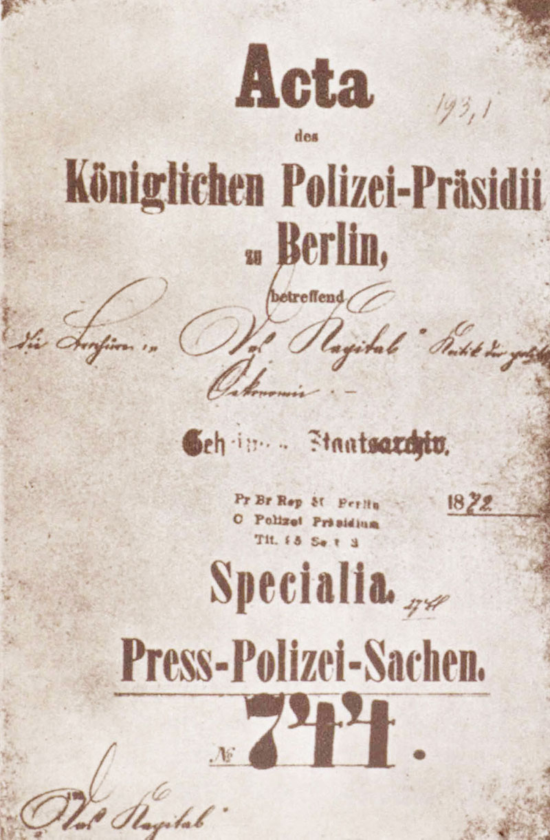 《资本论》出版后,引起了资产阶级的恐慌,他们极力压制有关《资本论》的宣传。这是柏林警察局对《资本论》立案的卷宗。