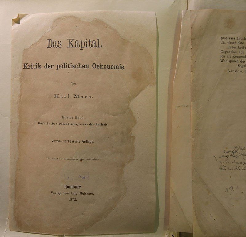 马克思将《资本论》第一卷献给了德国社会主义者、第一国际会员库格曼。这是马克思在该书上的签名。