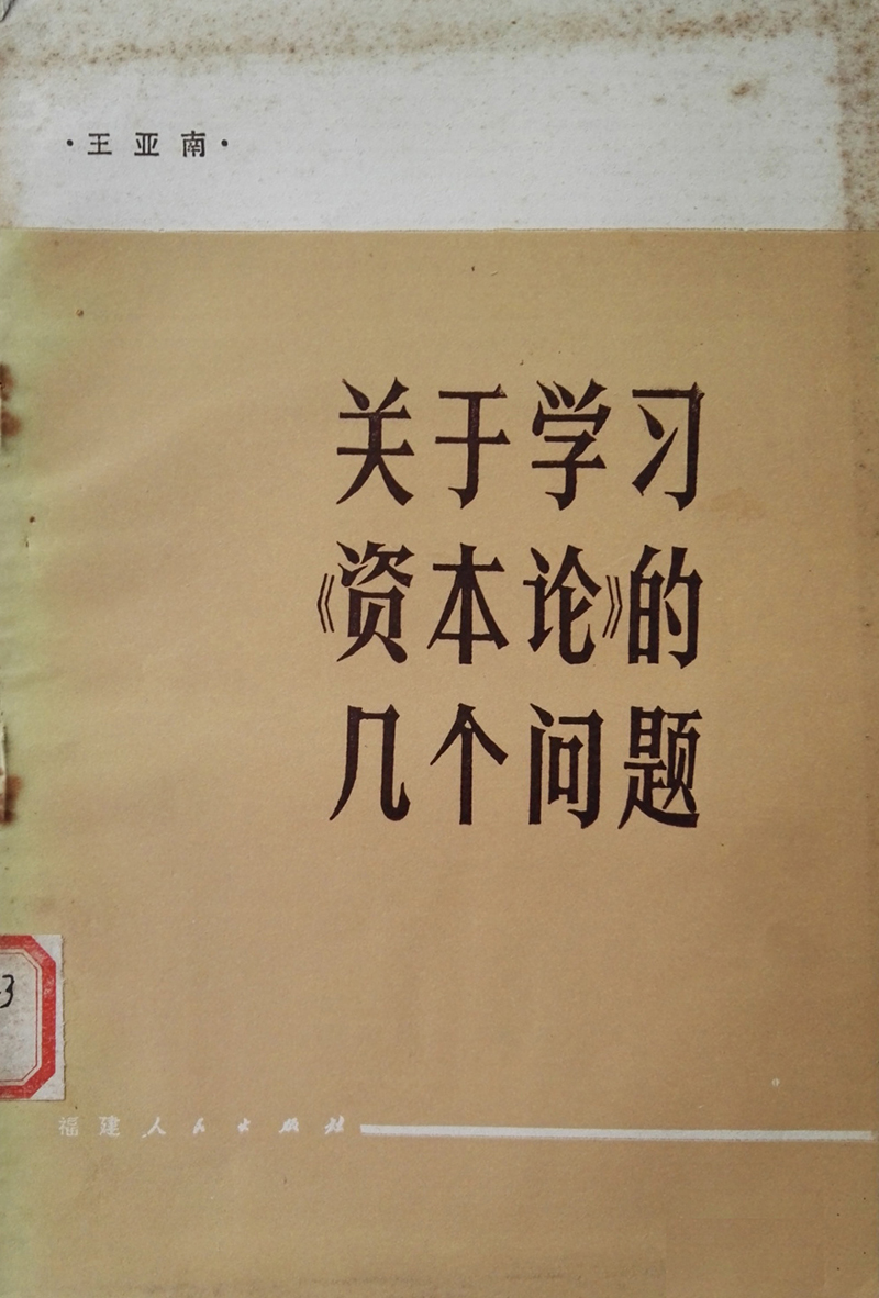1962年10月,王亚南撰写的《关于学习< 资本论>的几个问题》由福建人民出版社出版。