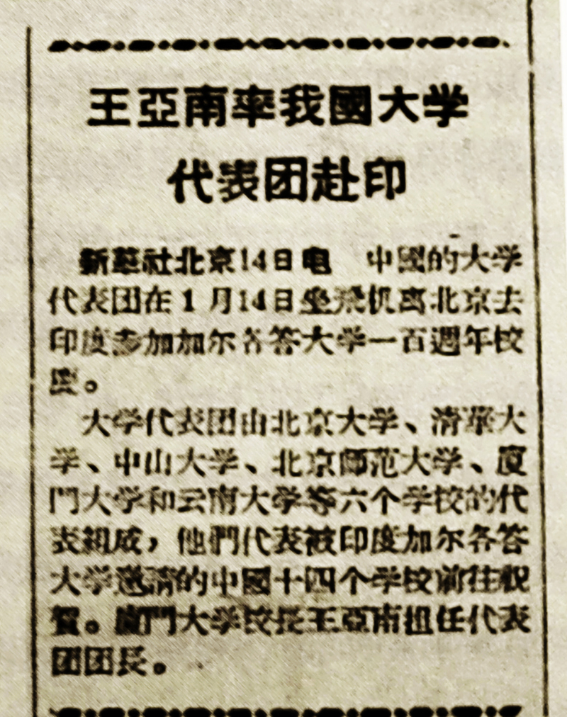 1957年1月,王亚南率中国大学代表团访问印度。